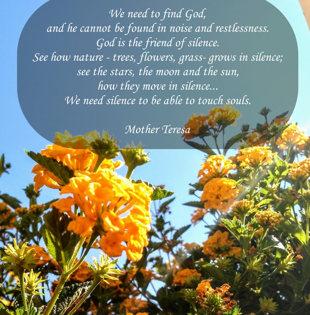 March 25, 2021 in Christian, Christianity, Theology, Uncategorized | Tags: finding God, flowers, lantana, Mother Teresa, silence