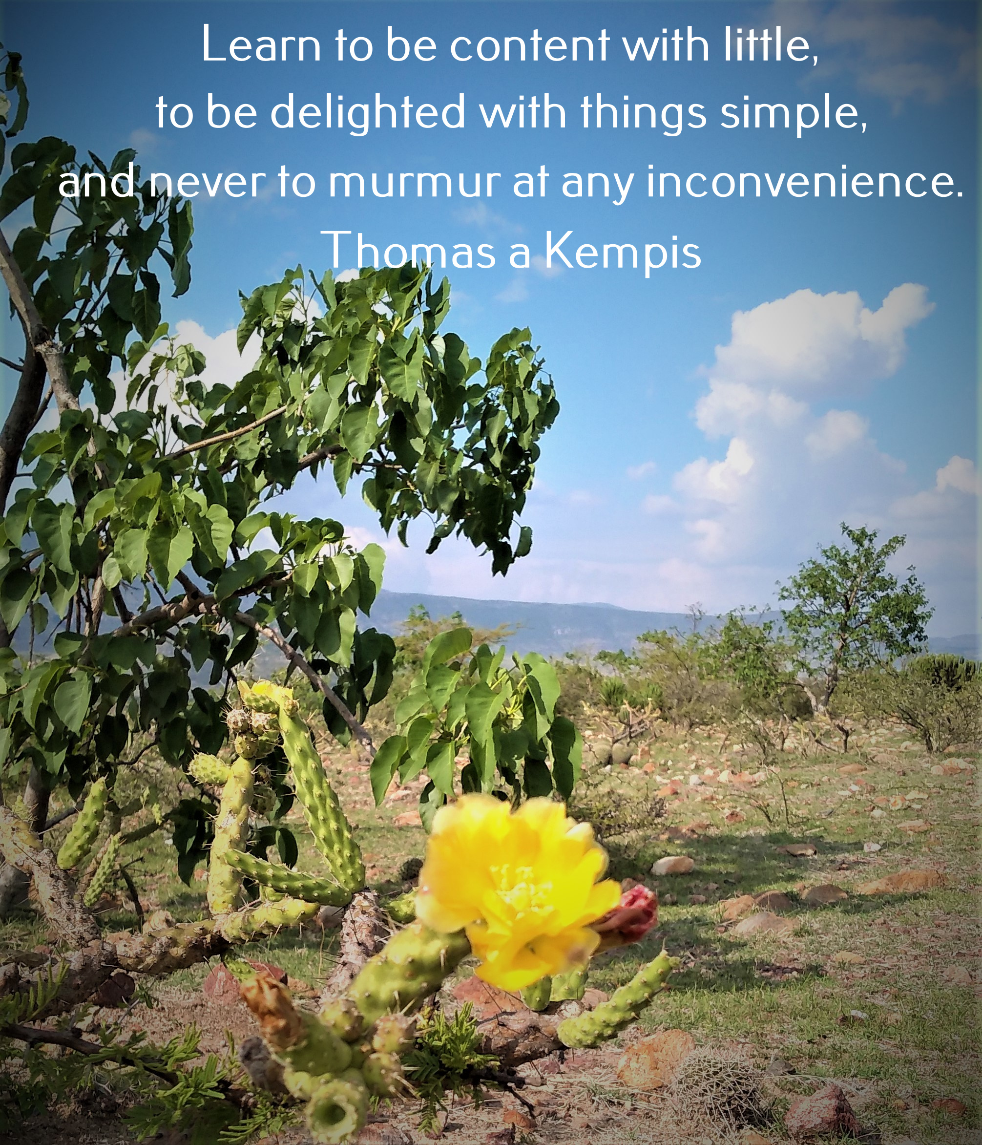 This plant is an apt metaphor for the quote above by Thomas a Kempis. Many times we complain or murmur about the burr stuck on our pants or embedded in our skin, and we miss the simple beauty of the flower. We are surrounded by simple beauty, gifts from God, no matter where we live, but with our bent nature, we are more likely to complain about inconveniences and disruptions than we are to be content with things simple.