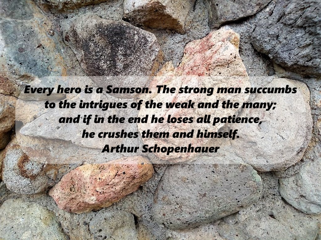 I got older and took another look at Samson and found him an incredibly flawed human being. Dishonoring his parents and his vows before God. Looking for love in all the wrong places with Philistine women. Not to mention his cruelty to animals (remember the 300 foxes?). It didn’t take too hard a look at his life for him to fall off the pedestal that I had put him on.