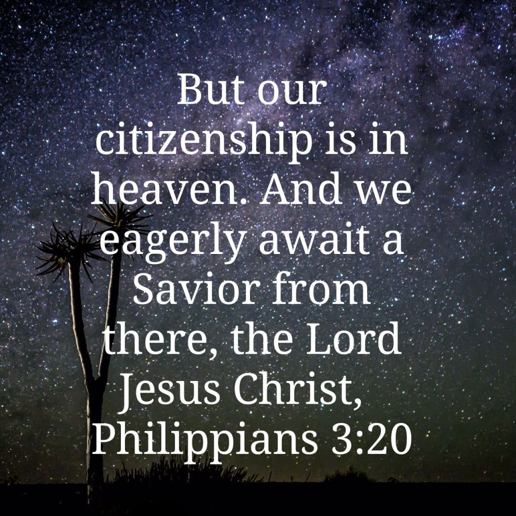 But our citizenship is in heaven. And we eagerly await a Savior from there, the Lord Jesus Christ, who, by the power that enables him to bring everything under his control, will transform our lowly bodies so that they will be like his glorious body. Philippians 3:20-21