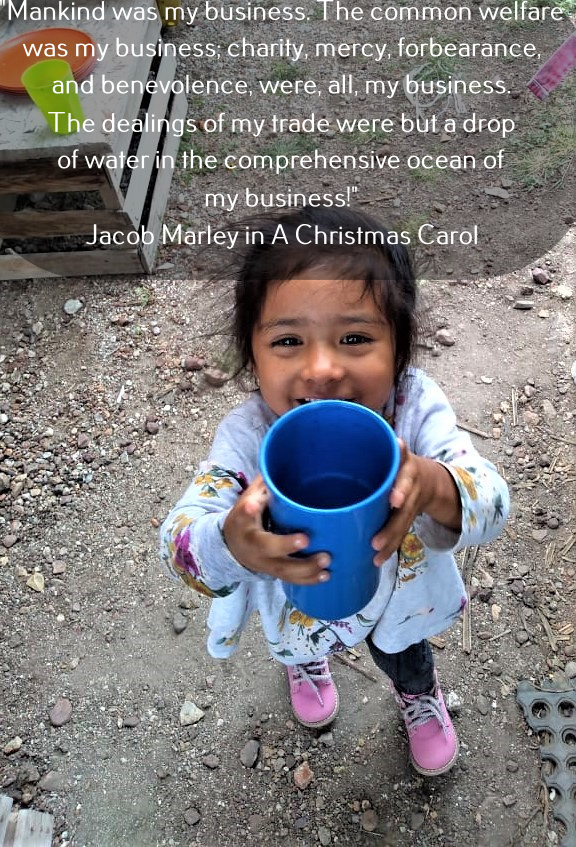 The Christmas Carol thing that really got my attention through the Scrooge deluge was the quote above from Jacob Marley which comes toward the beginning of the book and the movie, “Mankind was my business. The common welfare was my business; charity, mercy, forbearance, and benevolence, were, all, my business. The dealings of my trade were but a drop of water in the comprehensive ocean of my business!”